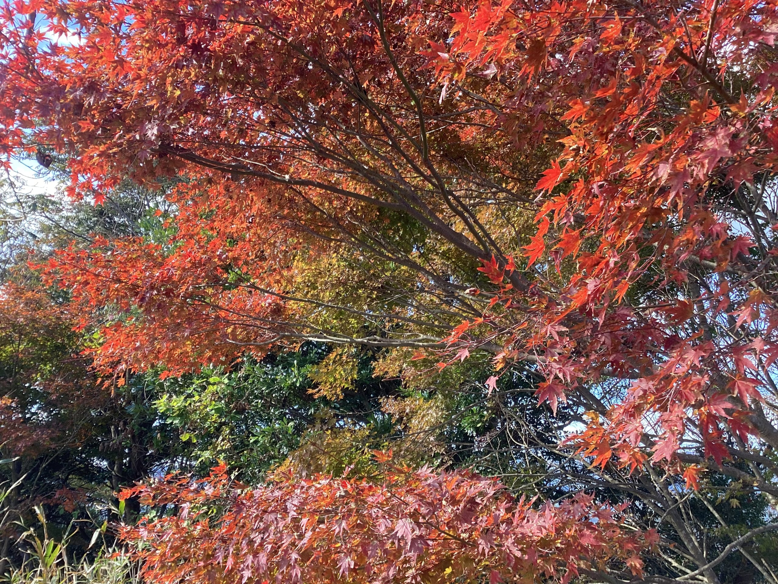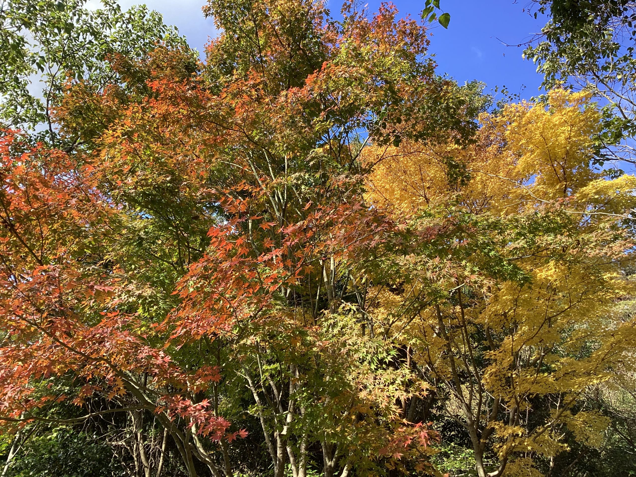 山の中腹にあるモミジの木々が