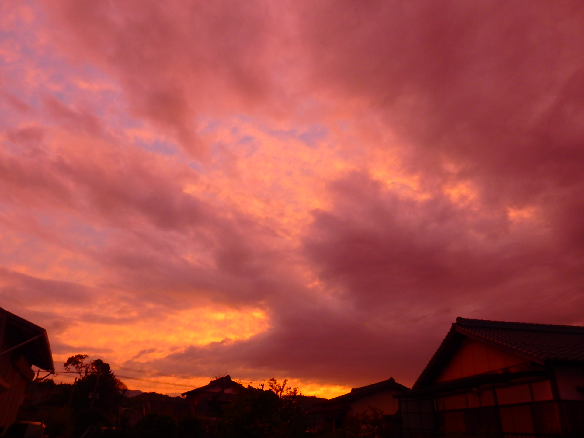 昨年もそうでしたが台風の前後は夕焼け空が怖いくらい赤いです!