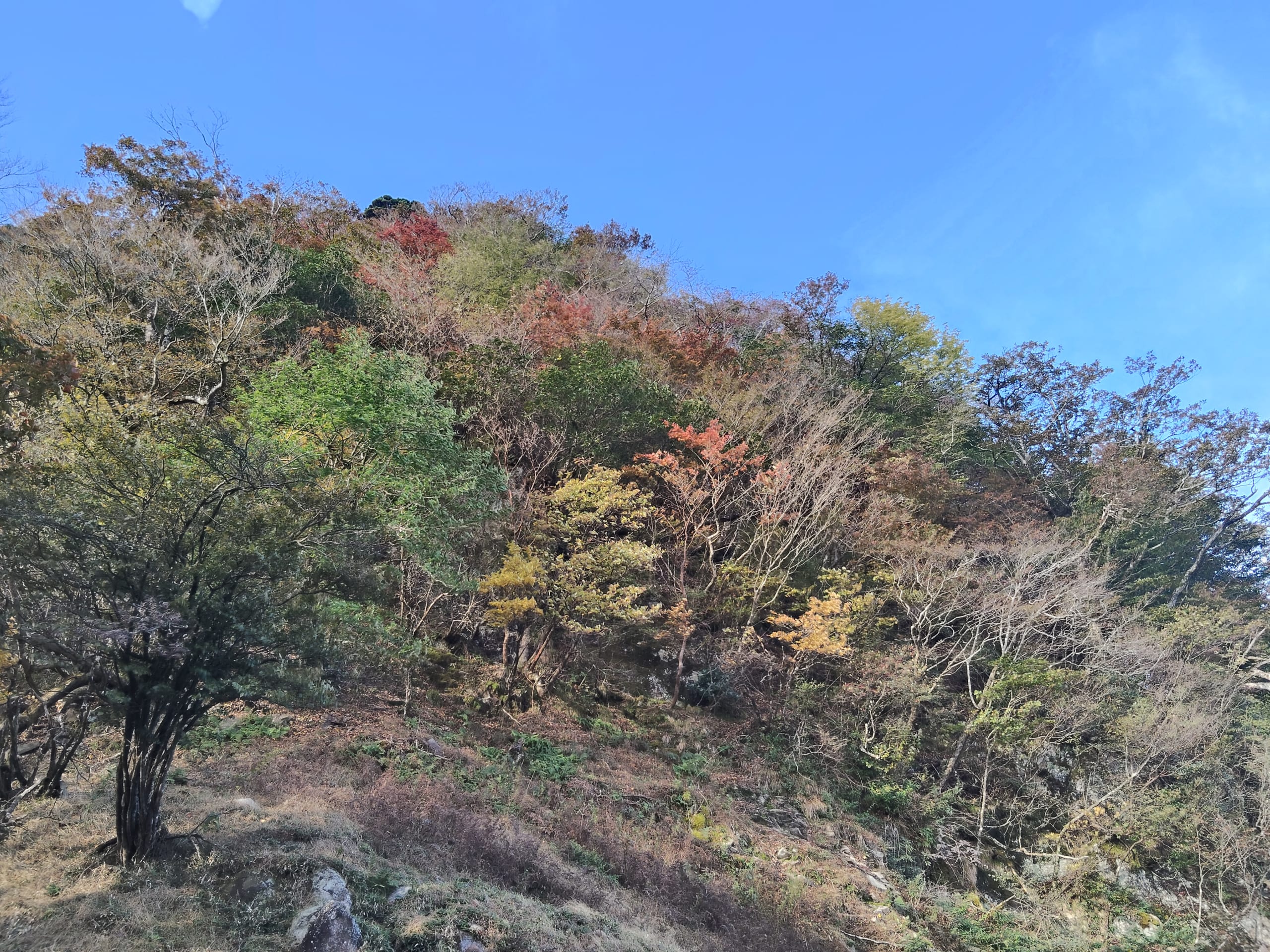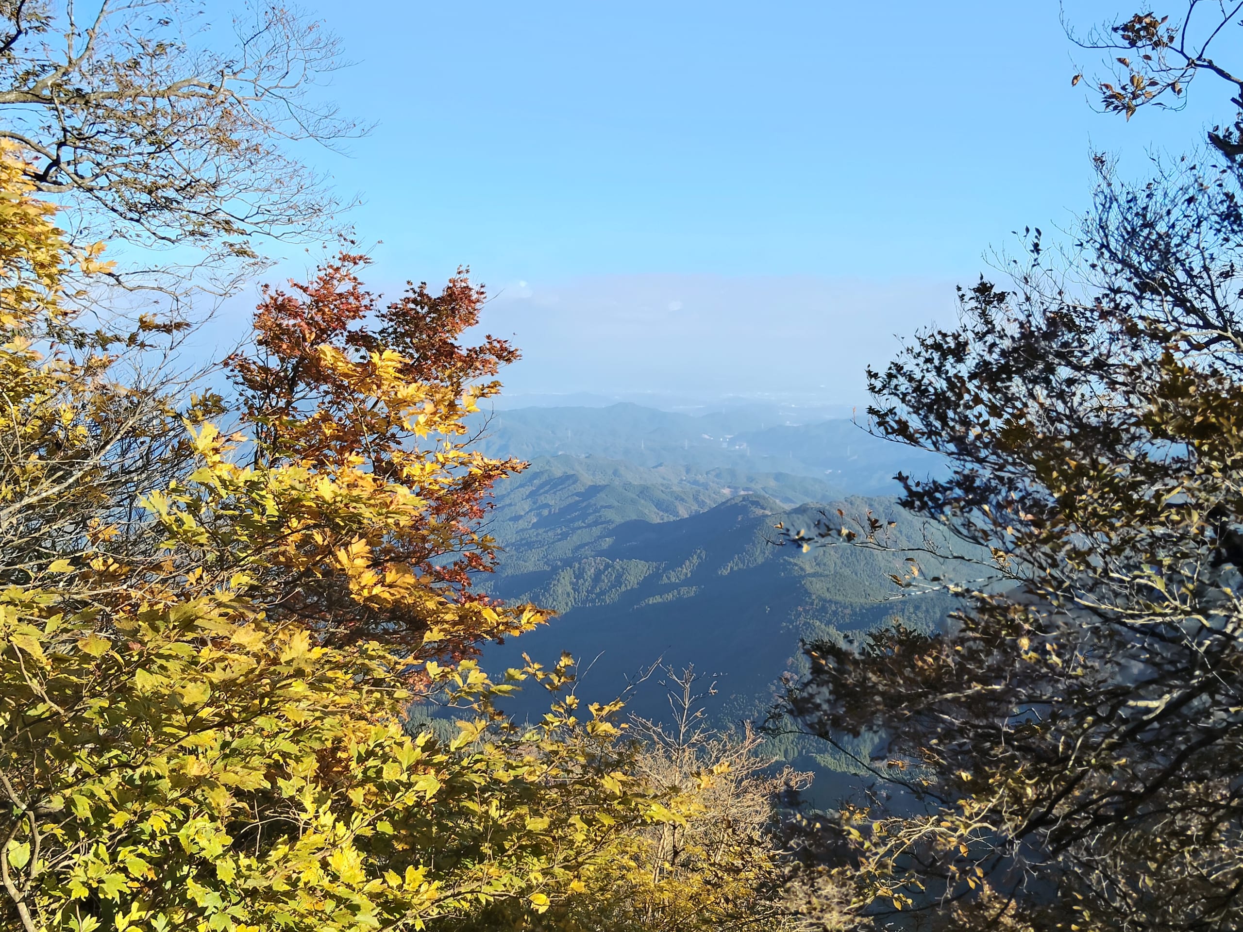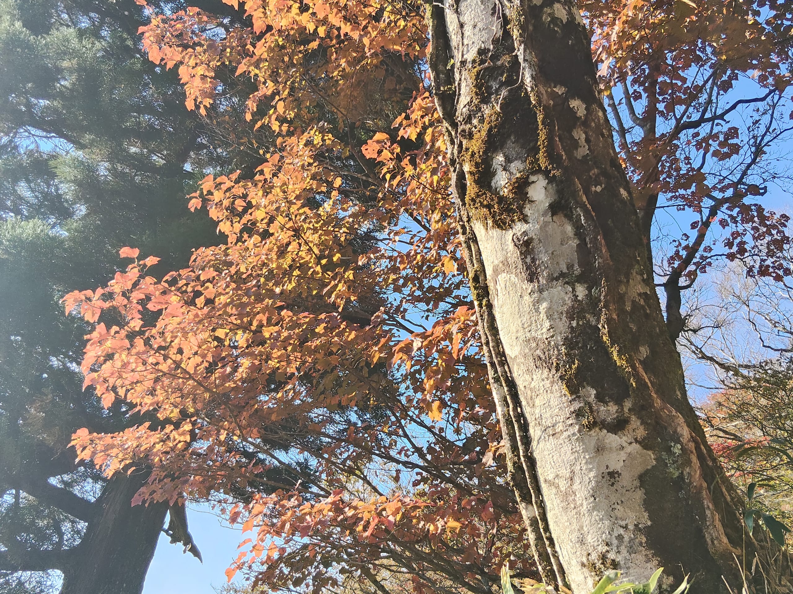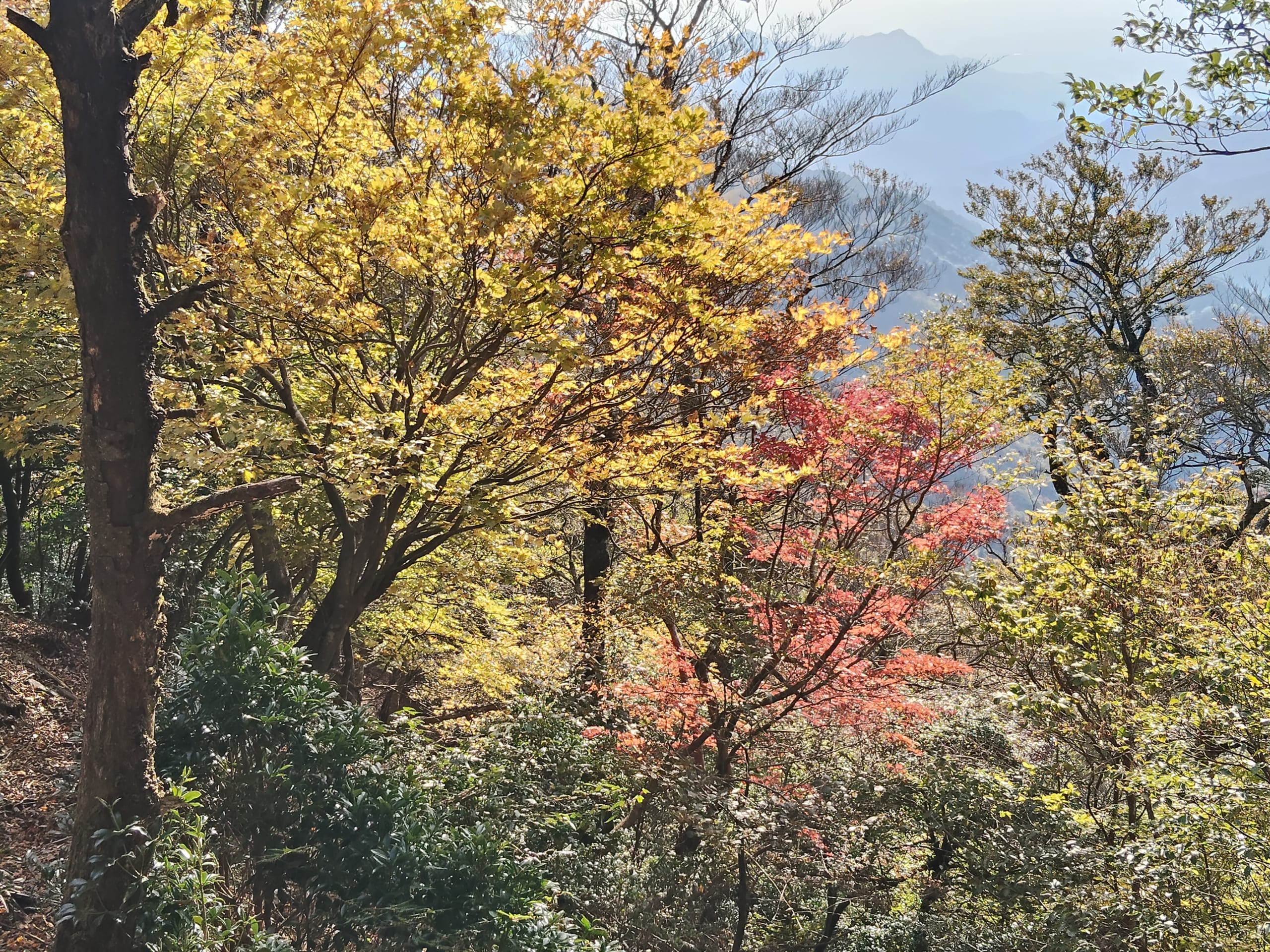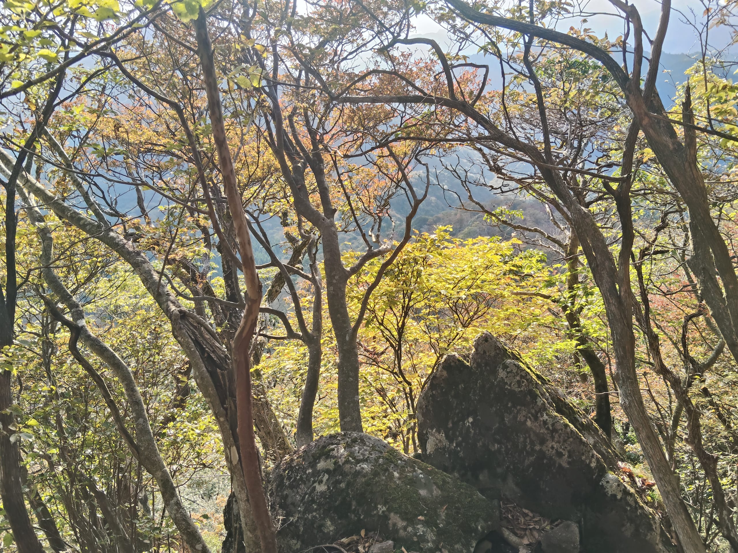 北岳の尾根まで登ると木々の紅葉🍁が朝日に