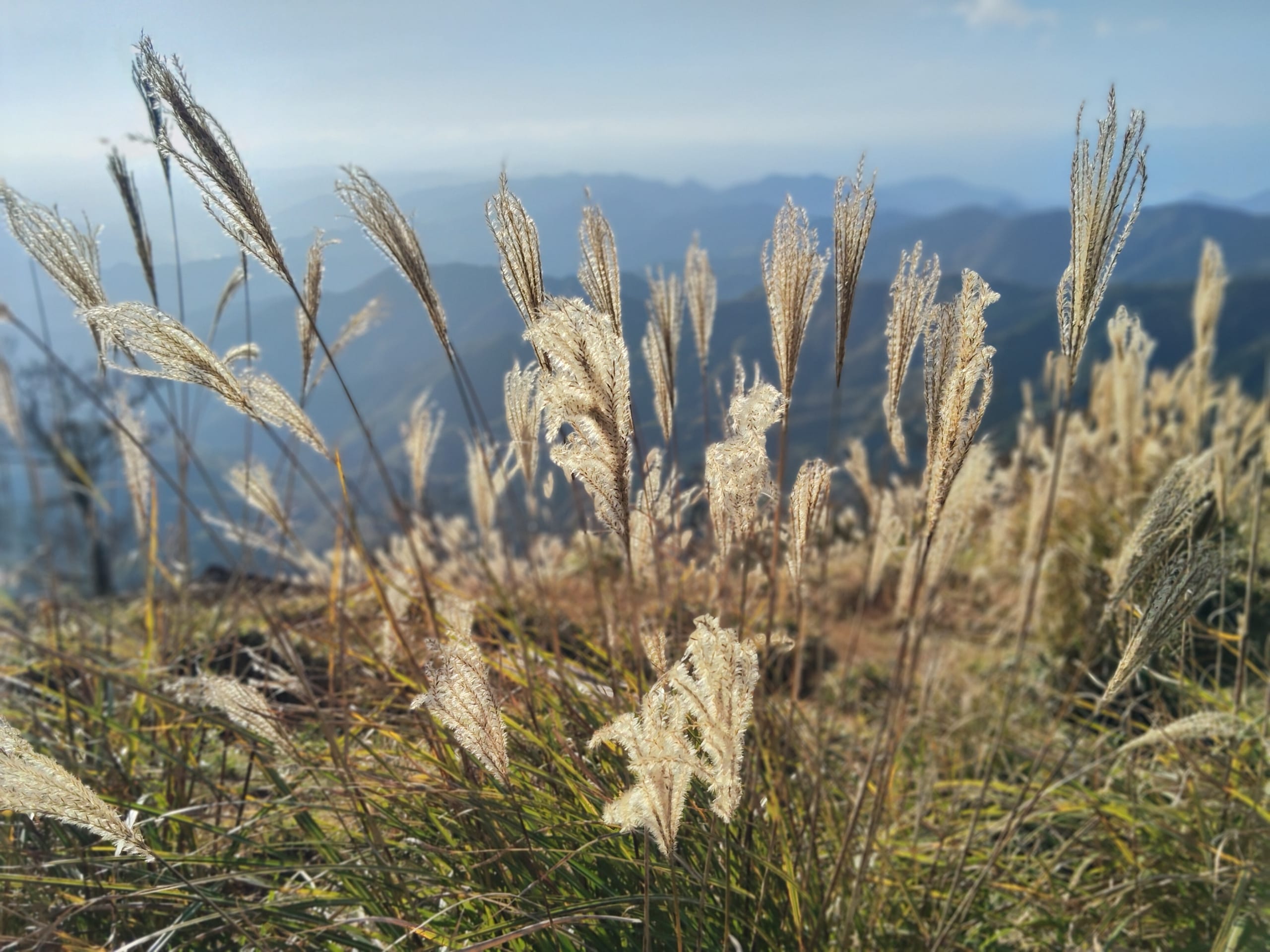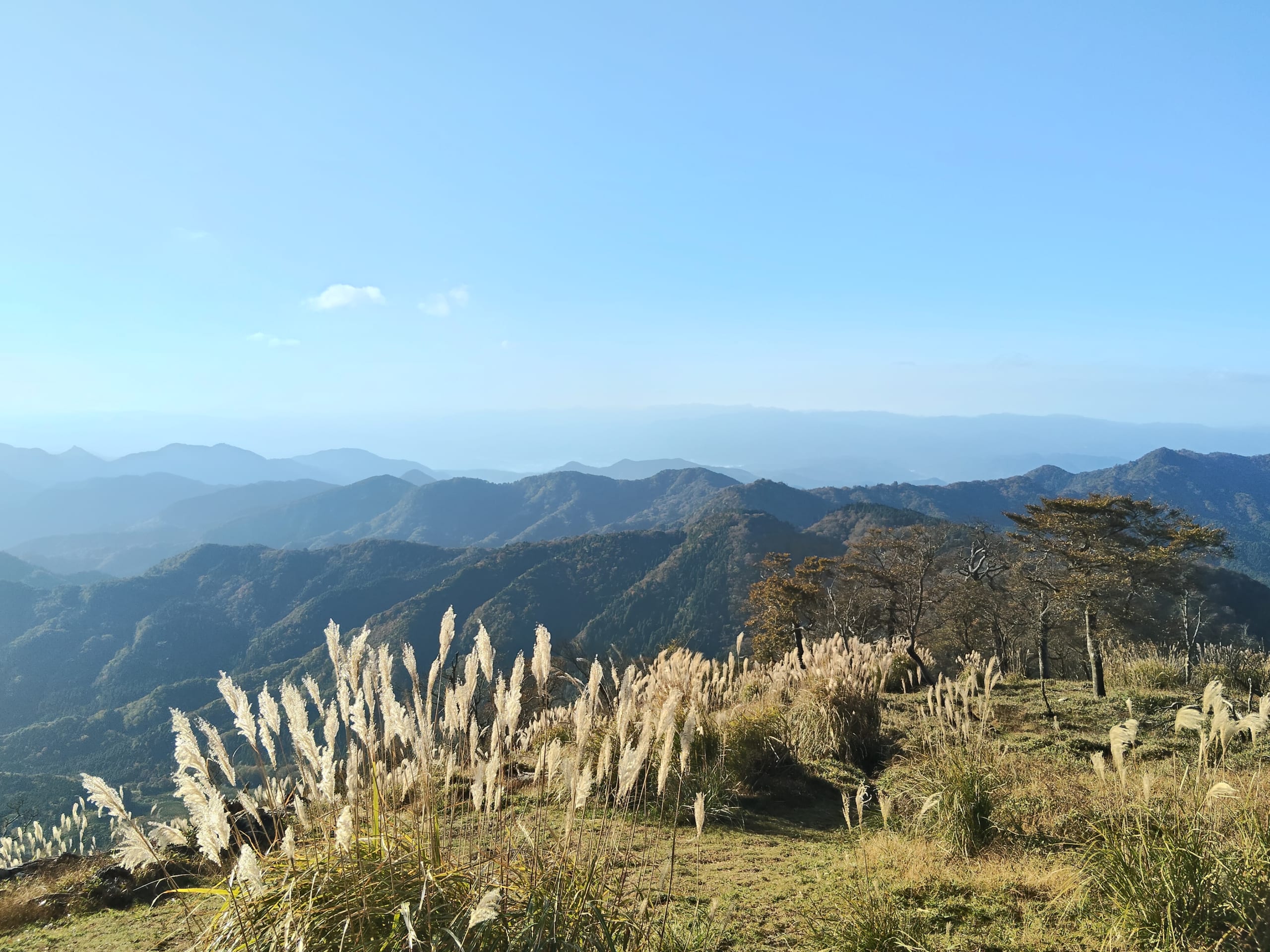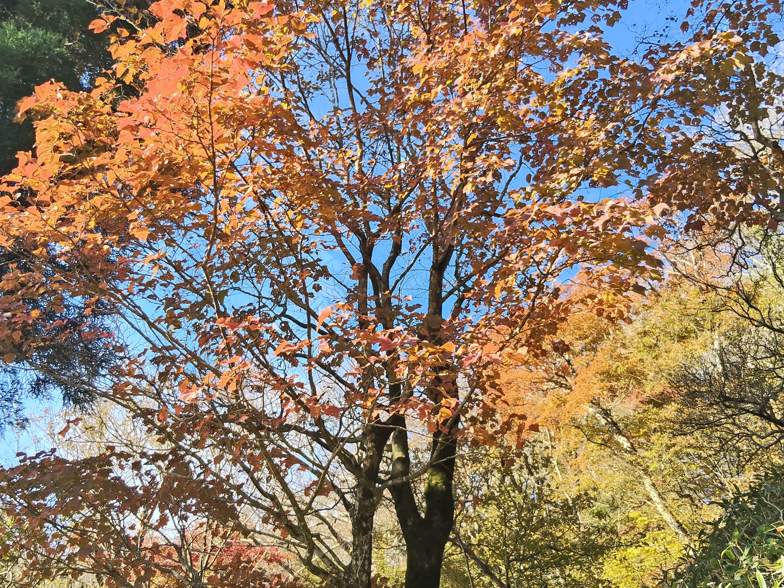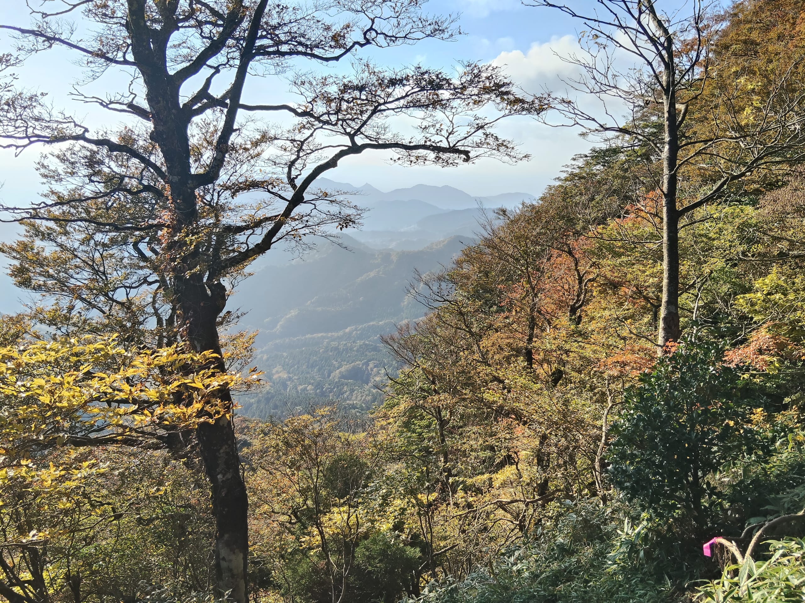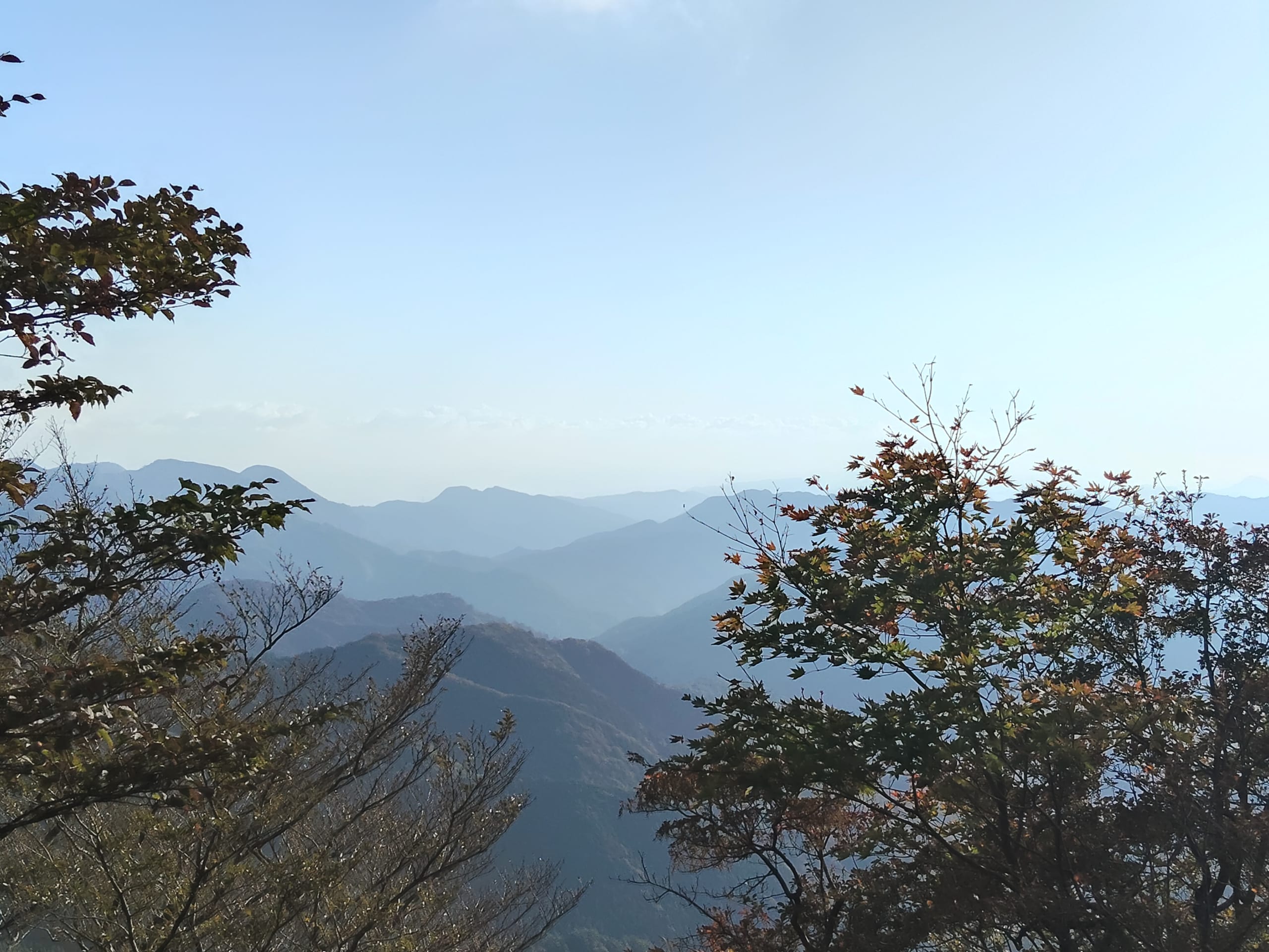 北岳の尾根まで登ると木々の紅葉🍁が朝日に