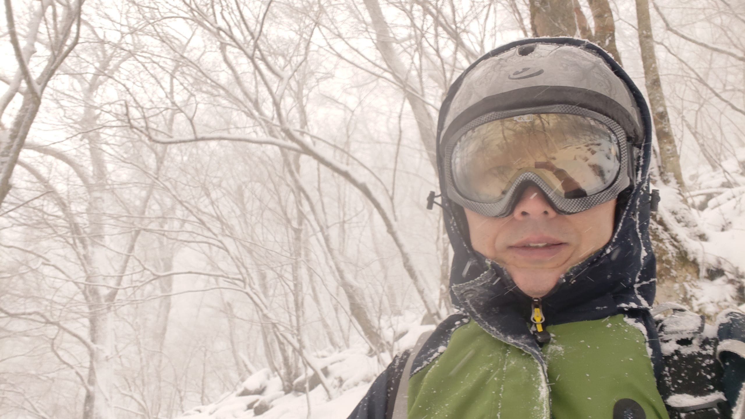 下山中に吹雪が激しすぎて目を開けられなくなったのでゴーグルを着用しました。マイナス10度以下の中、吹雪で視界不良だと流石に身の危険を感じます😭