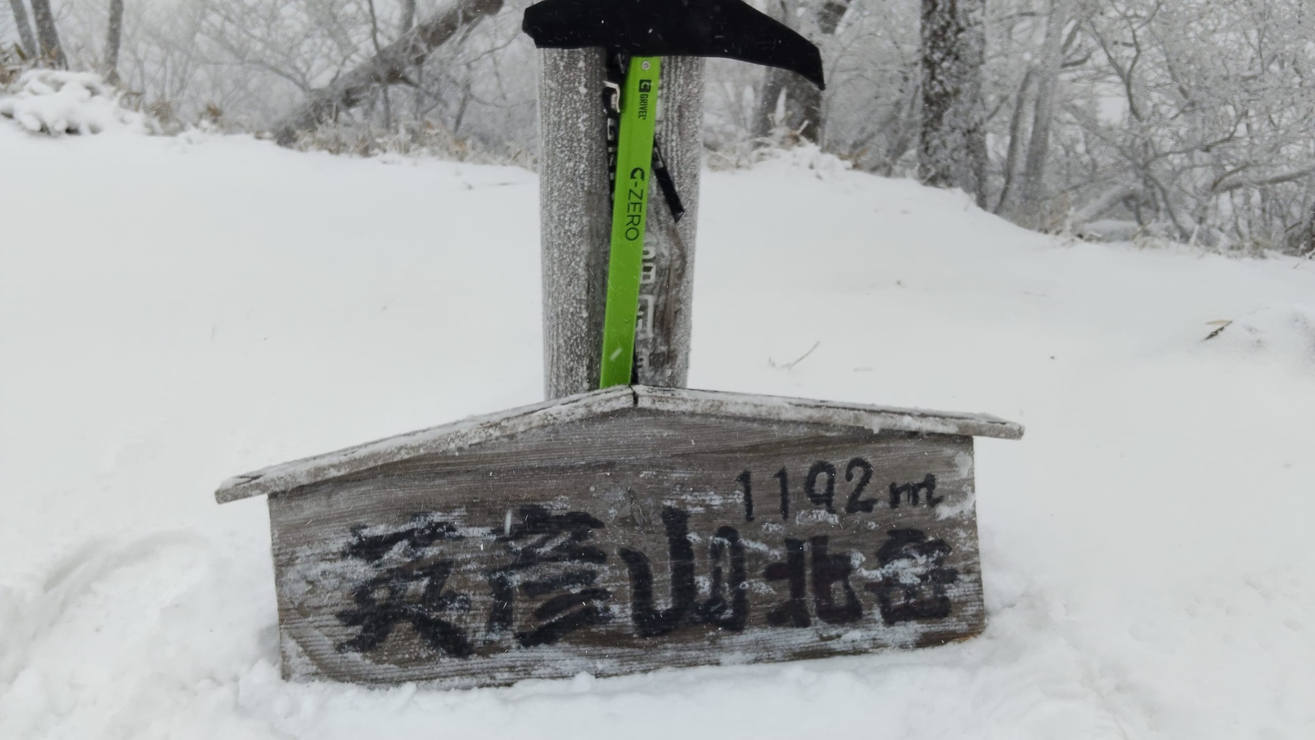 その後15分程登ると再び吹雪が吹き荒れかなりバッドコンディションになったので帰ろうかとも考えたのですが、あと少しで北岳山頂だったので気合いで登りました。山頂は予想通り極寒の世界でしたので、写真を撮ってお参りしたら即退散しました💦