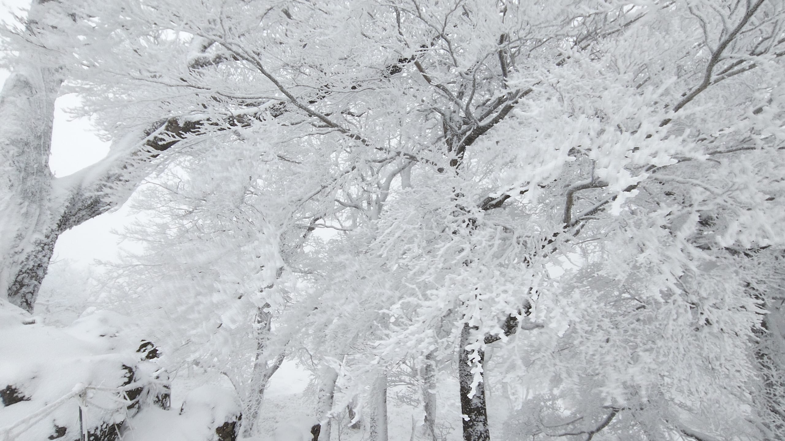 もうすぐ尾根に出るという所で吹雪が激しくなり、登るのがかなり大変でした。それでも何とか尾根に出ると前回以上に霧氷が一面に広がり異世界に迷い込んだかのようでした✨️✨️