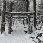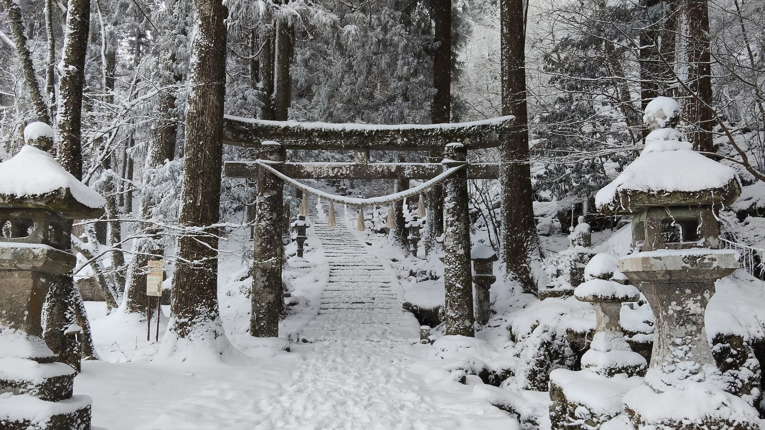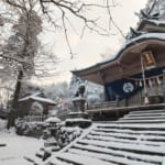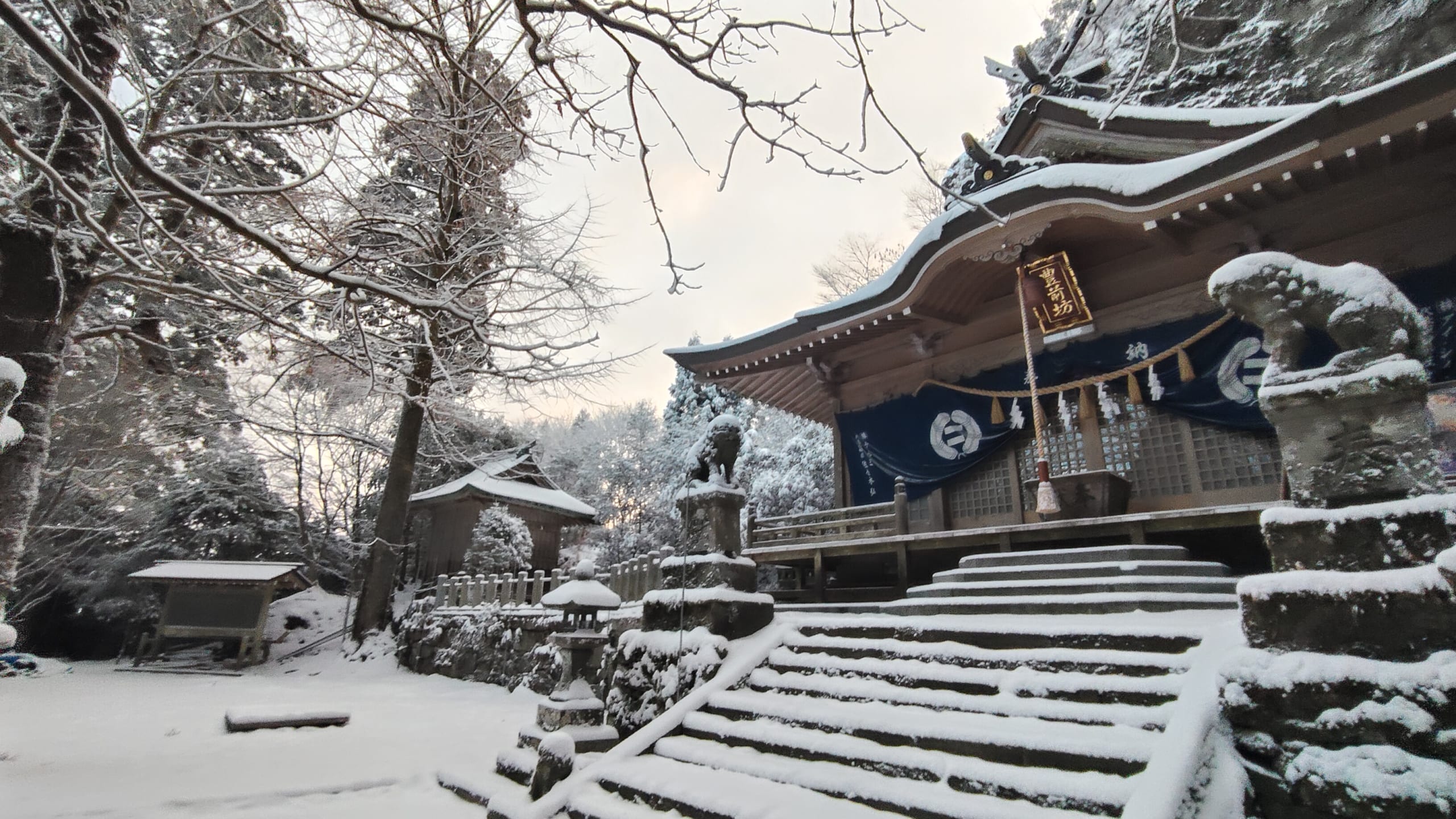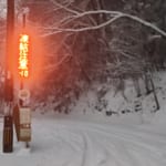 1時間程かけて何とか高住神社に着いたのですが、雪の様子を見る為にしばらく駐車場にて待機しました。この時の温度はマイナス10度😰